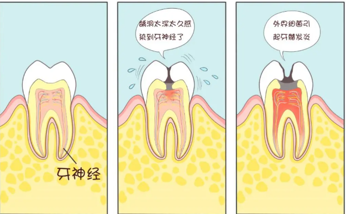 温馨提示:发现蛀牙要早治疗,防止病变进展引发牙髓炎。